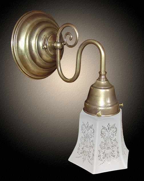 Shown in Antique Brass. Available in different Metal Finishes, different Glass, Back Plate, multiple arms and many other Custom Options